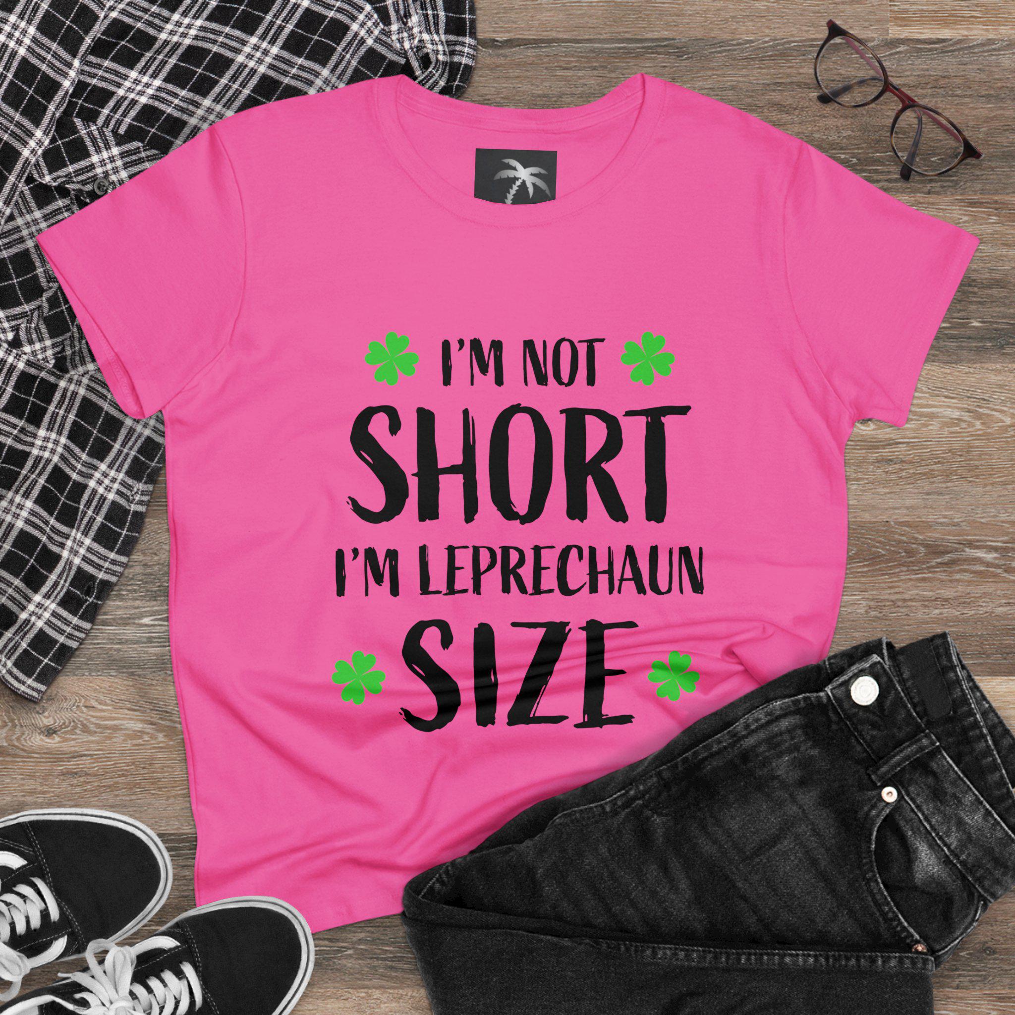This 'I'm Not Short I'm Leprechaun Size' T-Shirt gives a playful and humorous vibe, perfect for those who embrace their fun-sized stature. It's a great addition to your casual wardrobe, especially for St. Patrick's Day celebrations or anyone who loves whimsical tees.