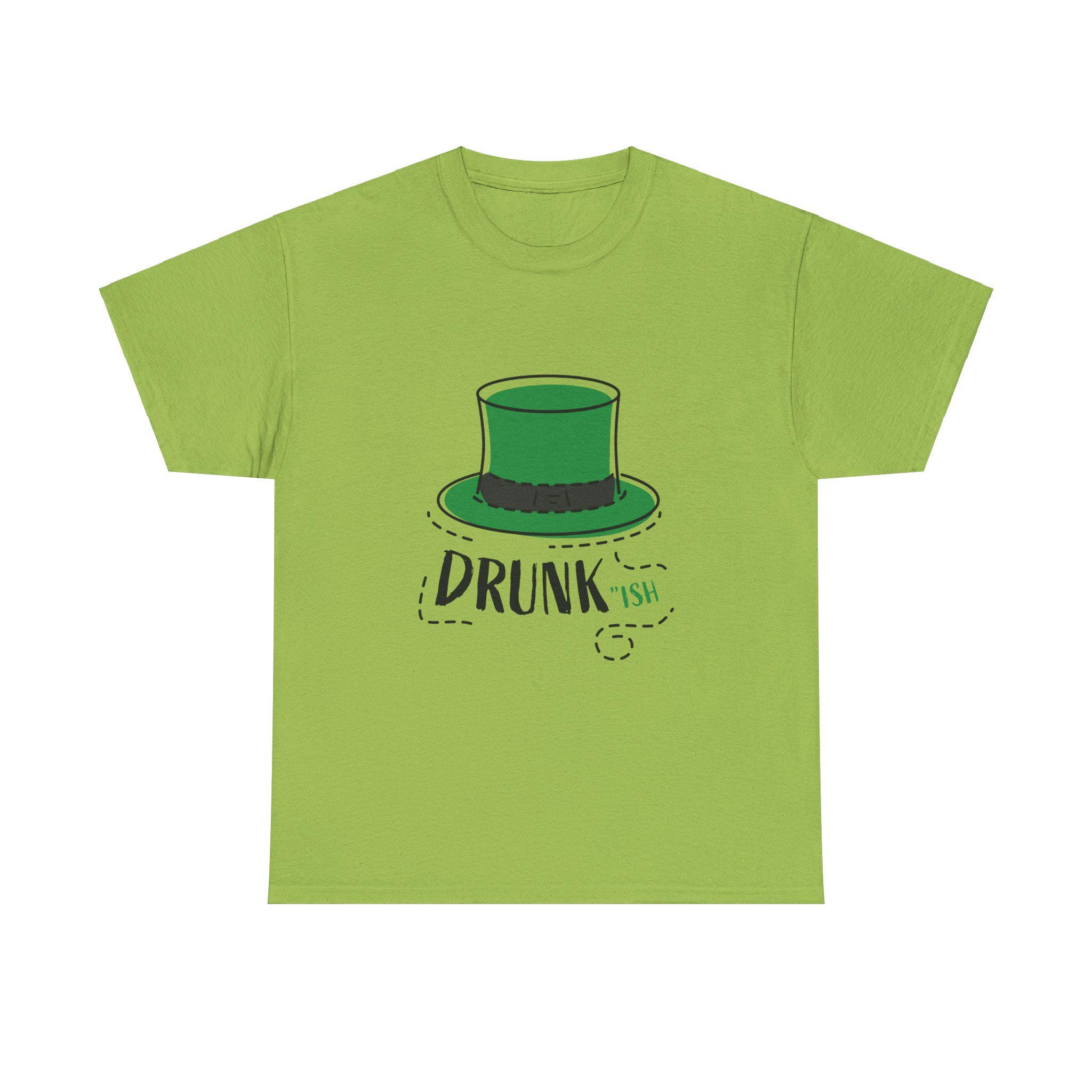 Drunk-ish Unisex Heavy Cotton Tee perfect for St. Patrick's Day celebrations. This tee offers a comfy, relaxed wear with a classic fit and a neat crew neckline. It is made with sustainable and highly durable cotton, ensuring year-round comfort. The shoulder tape and ribbed knit collar provide stability and elasticity, while the tear-away label offers a scratch-free experience. Ideal for adults looking for a fun and festive shirt for the holiday season.