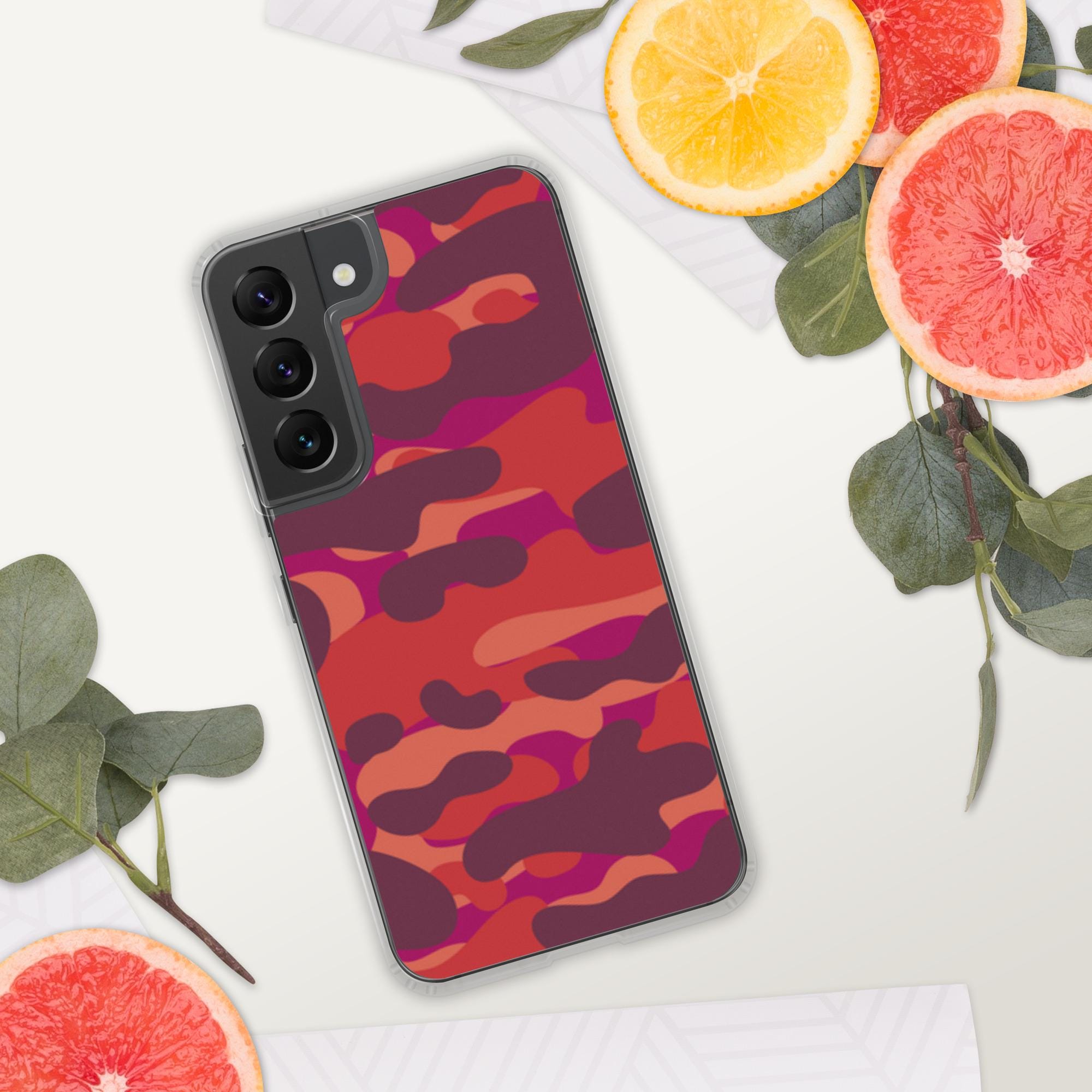 Ditch the boring and upgrade your everyday carry with this aesthetic red and pink camo Samsung® case! Featuring a bold and vibrant abstract camouflage pattern, this case is the perfect accessory to showcase your unique style. Its modern take on a classic print uses a stunning palette of red, berry, and burgundy hues that make your phone a true fashion statement.