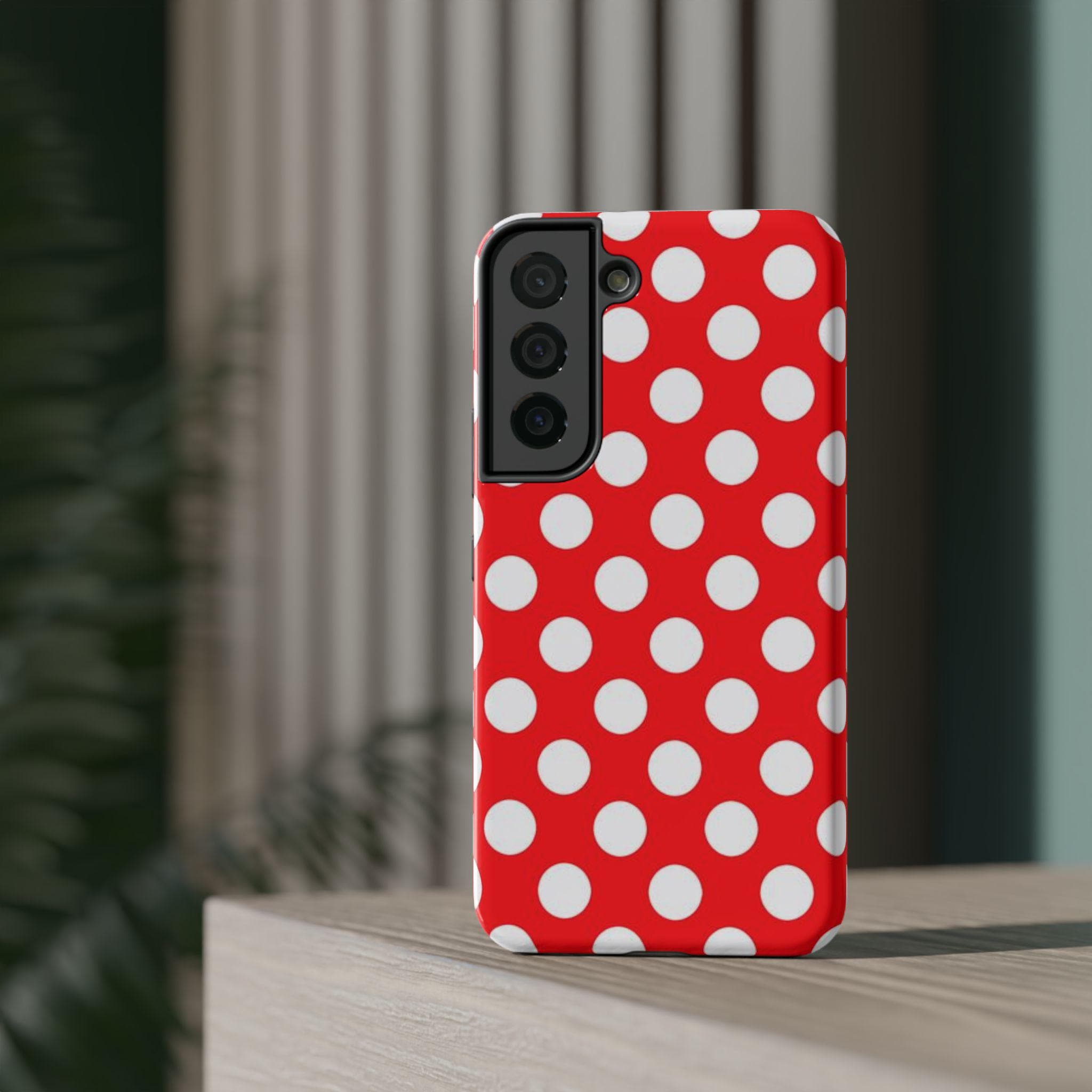 This red and white Polka Dot Phone Case offers personalized protection for your iPhone or Samsung models. With its durable, impact-resistant design, vibrant colors, and cute accessories, this phone case is a fun and stylish gift for adults. Perfect for adding a pop of color and personality to your phone while keeping it safe from scratches or bumps. Ideal for birthdays, holidays, or just treating yourself to a new case.