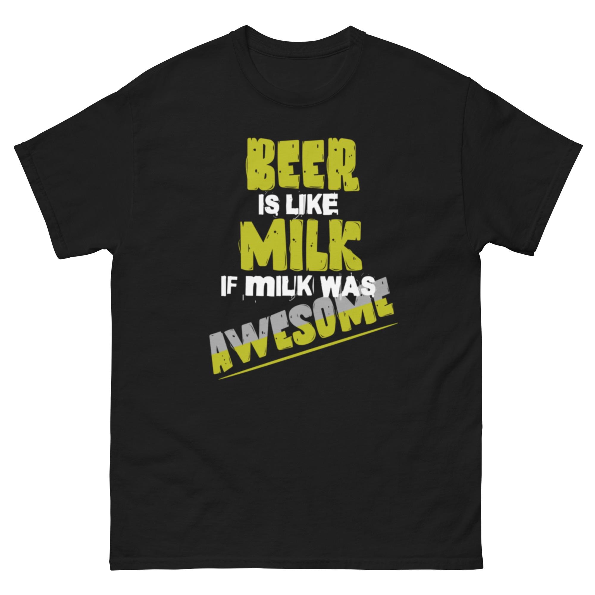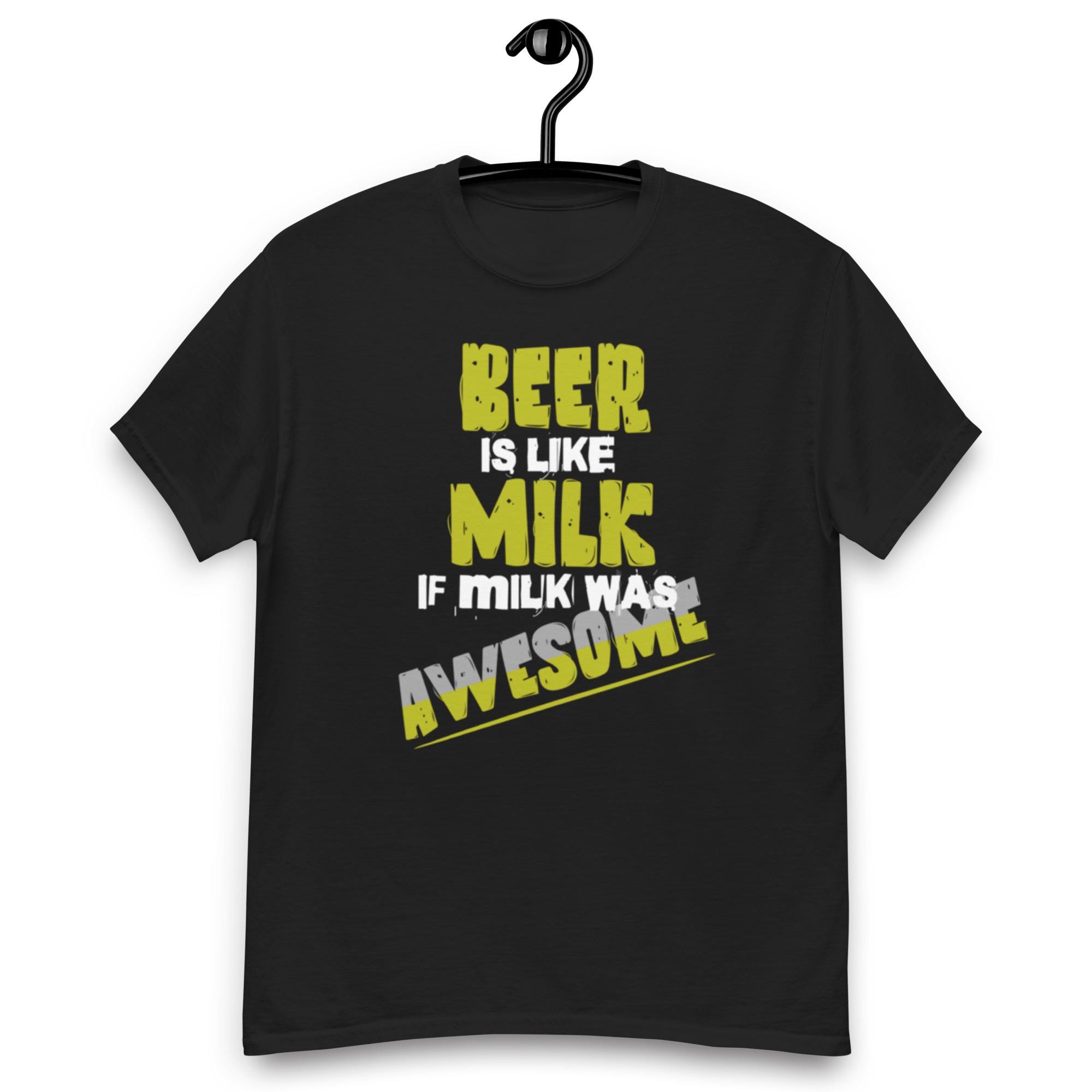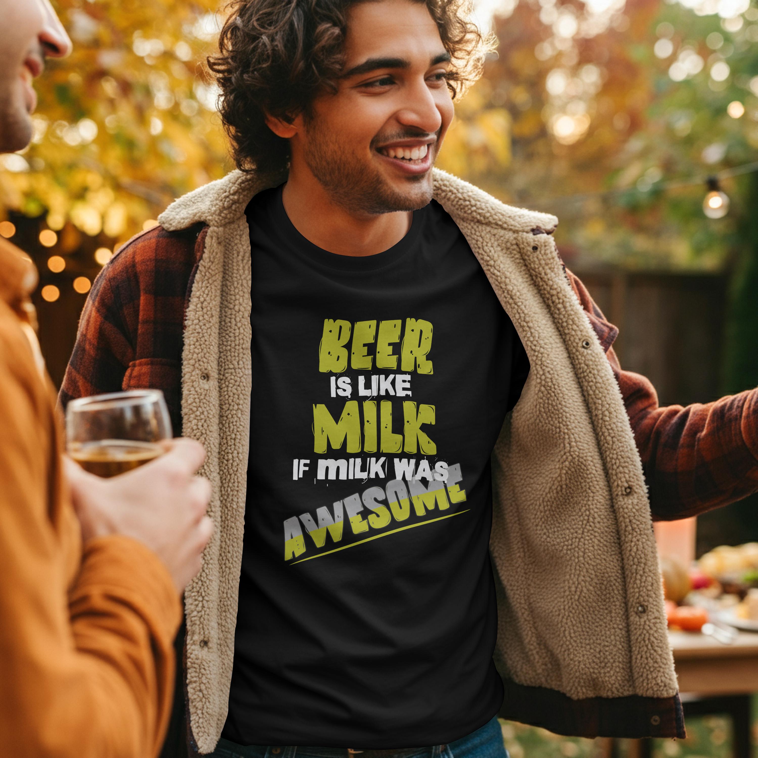 This Awesome Beer Is Like Milk Tee is a fun and quirky addition to any beer lover's wardrobe. It's perfect for casual wear, parties, or as a funny gift for birthdays. The shirt has a classic fit and comfortable fabric, making it suitable for adults to wear year-round.